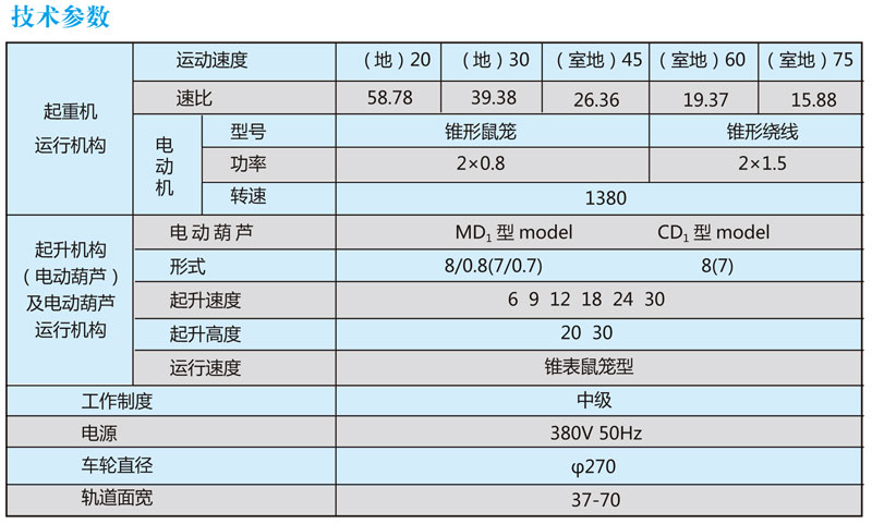 LD型具有結(jié)構(gòu)合理,整機(jī)剛性強(qiáng)的特點(diǎn)。整機(jī)與CD1型、MD1型電動(dòng)葫蘆配套使用,是一種輕小型起重機(jī)械。起重量為1-32T,跨度為5.5-35.5米,工作級(jí)別為A3,工作環(huán)境溫度為-25℃--40℃。